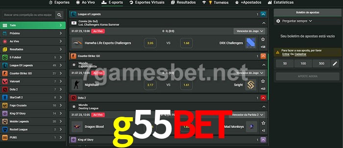 O g55bet oferece uma grande seleção de opções de apostas em e-sports com probabilidades competitivas